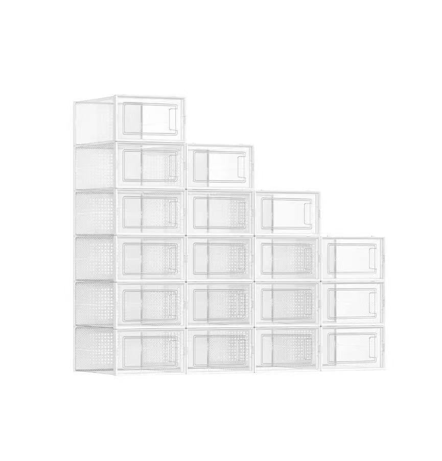 What You Get: Pack of 18 transparent shoe boxes with clear front door, stackable and foldable design, and ventilation holes. Say goodbye to scattered shoes everywhere and put your shoes in order now.