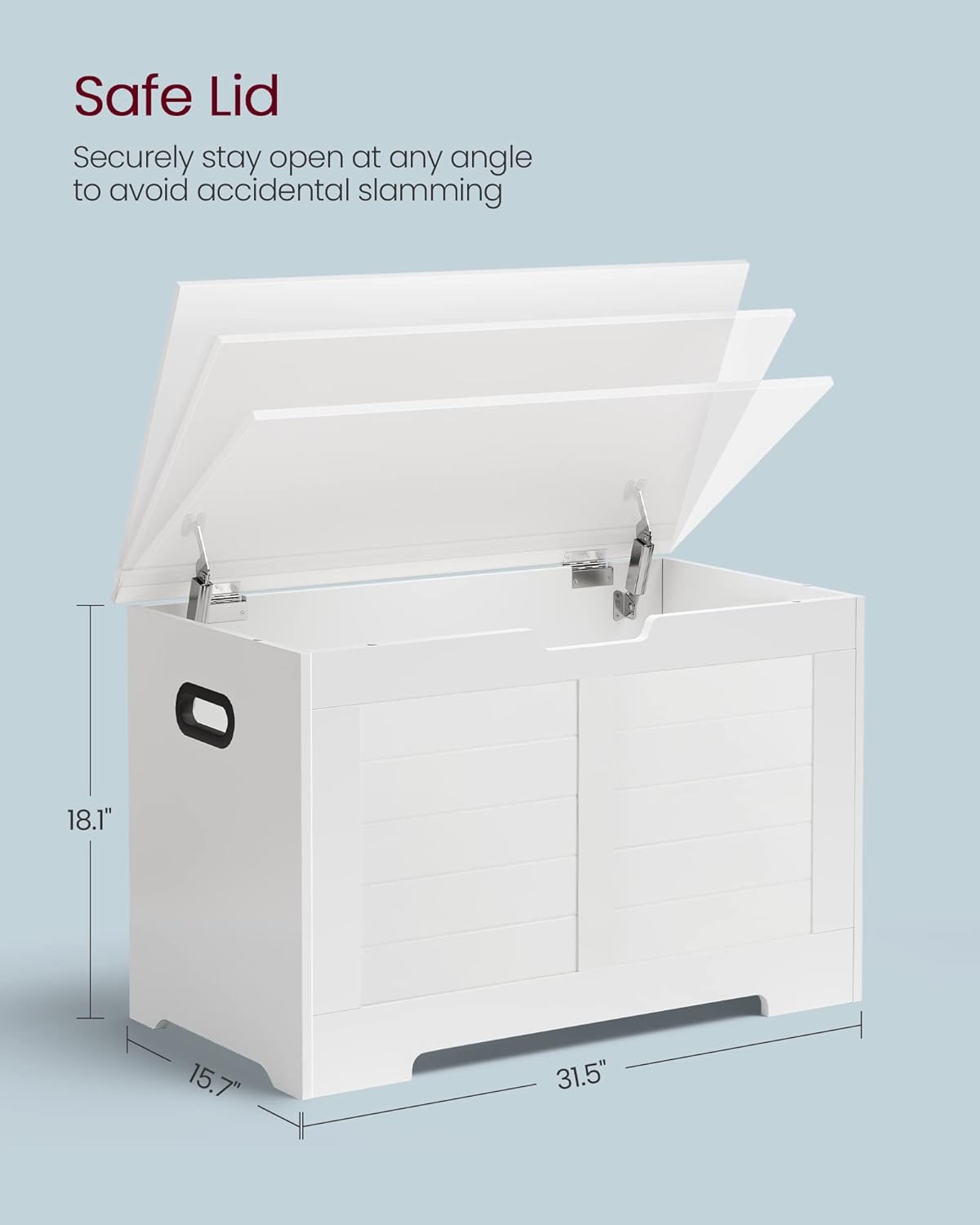 2 Hinges, Steadier and Safer: Thanks to the 2 support hinges, the lid of this storage chest can stay securely open at any angle—no slamming shut, no pinched fingers!