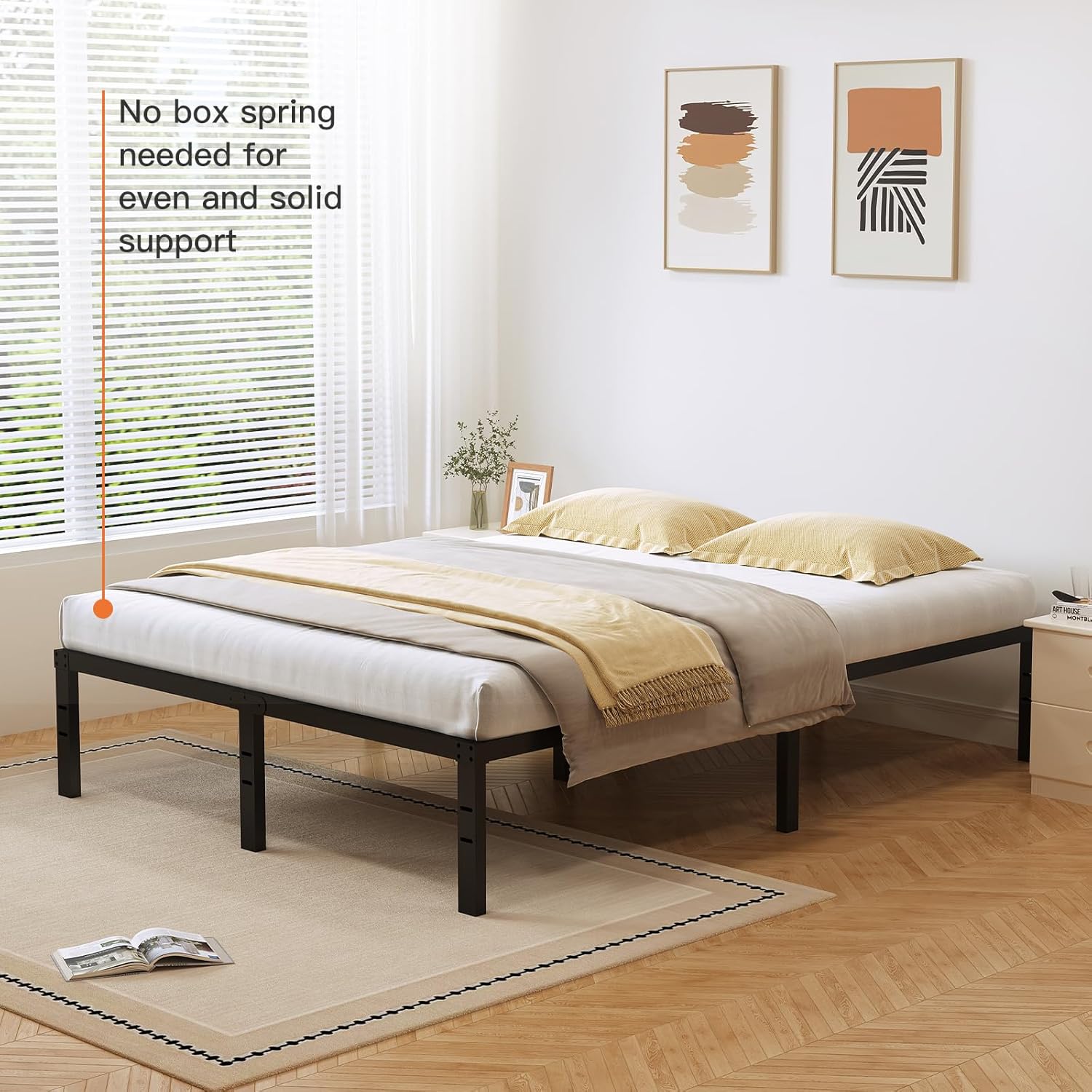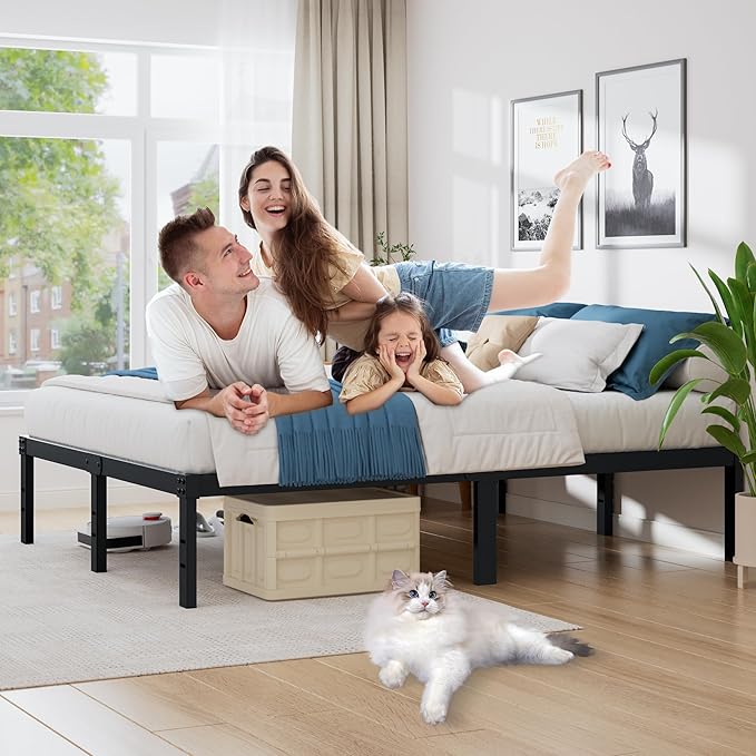 Noise-Free Design:The metal platform bed frame features noise-reducing features, including rubber gaskets, secure locking mechanisms, and non-slip tape on steel slats. This design is ideal for light sleepers who are easily disturbed by creaking or rattling sounds.